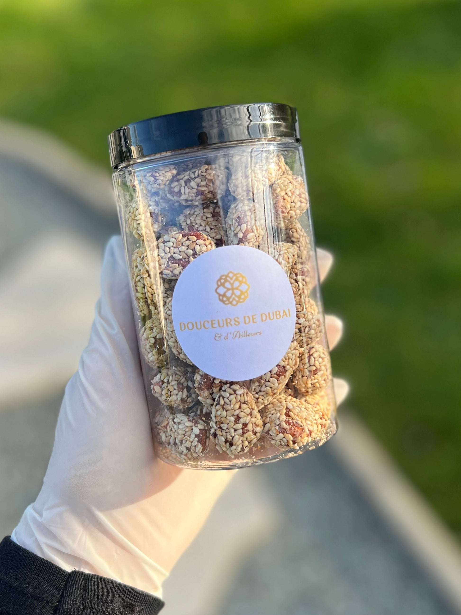 Redécouvrez le plaisir du croquant avec ces amandes grillées, enrobées d’un caramel doré et parsemées de graines de sésame. L’alliance du sucre délicatement caramélisé et de la note toastée du sésame crée une harmonie parfaite, à la fois douce, croustillante et raffinée.