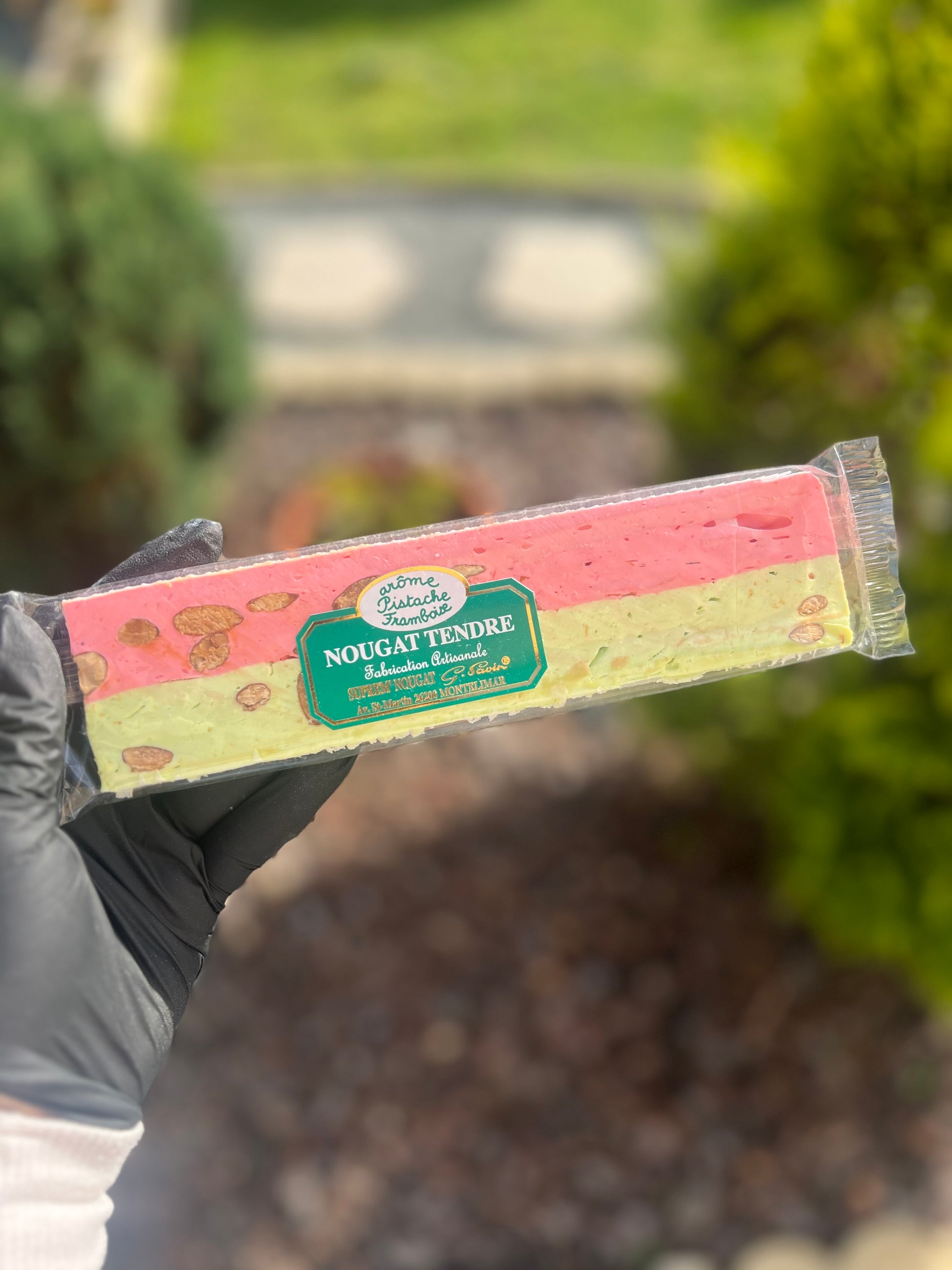 Succombez à l’alliance irrésistible de la pistache intense et de la framboise fondante dans une barre de nougat tendre confectionnée artisanalement à Montélimar, berceau de cette douceur emblématique.