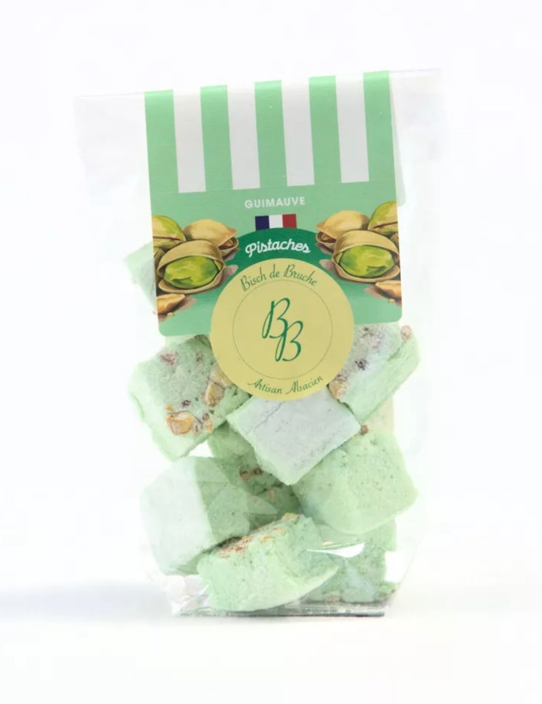 Laissez-vous surprendre par des guimauves légères et aériennes, délicatement parfumées à la pistache. Leur texture fondante se marie à la saveur subtilement toastée de la noix verte, créant une expérience gourmande originale à chaque bouchée.