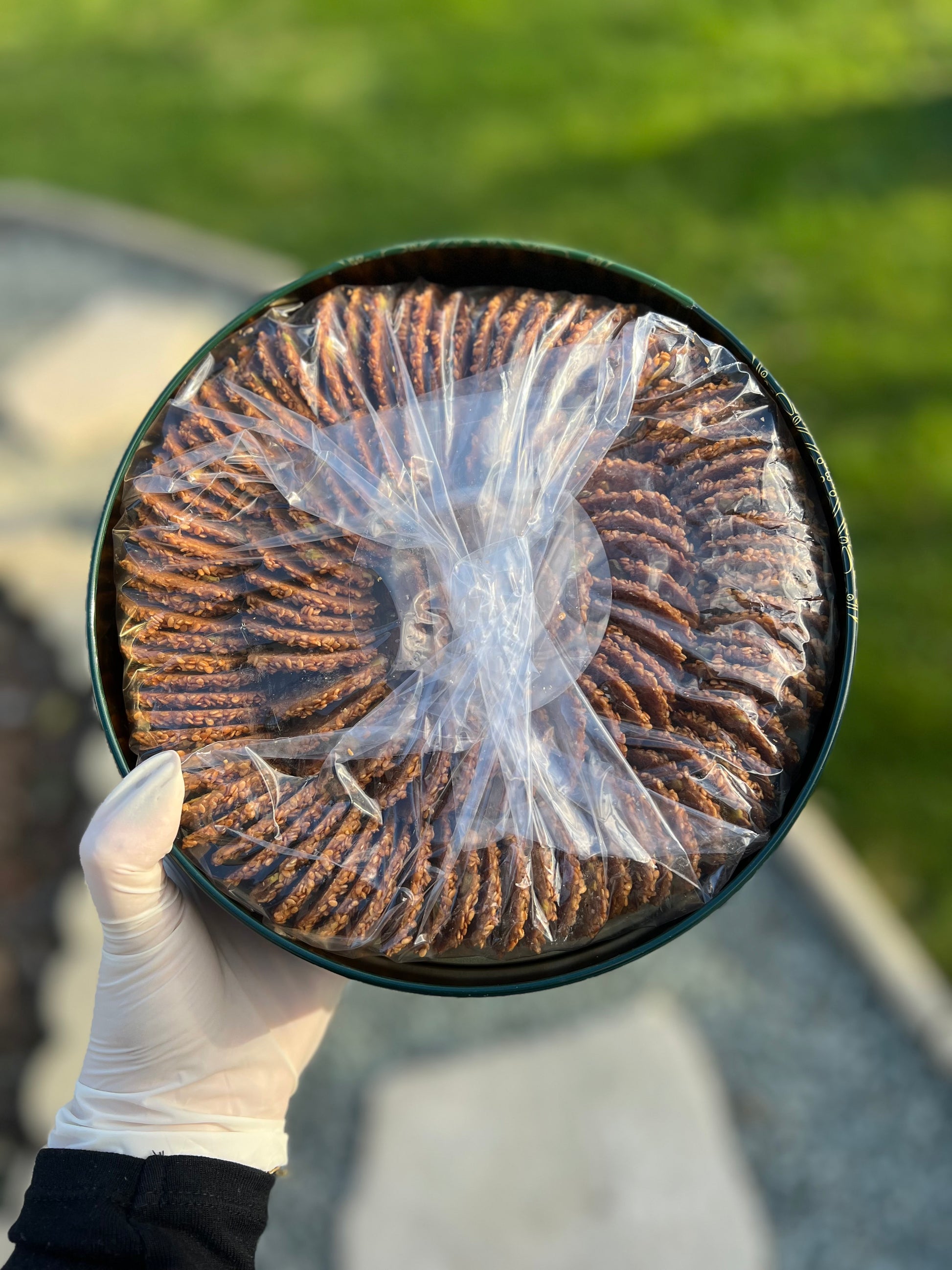 Découvrez le goût authentique du Barazek syrien, un biscuit fin et croustillant recouvert de grains de sésame dorés et de pistaches croquantes.